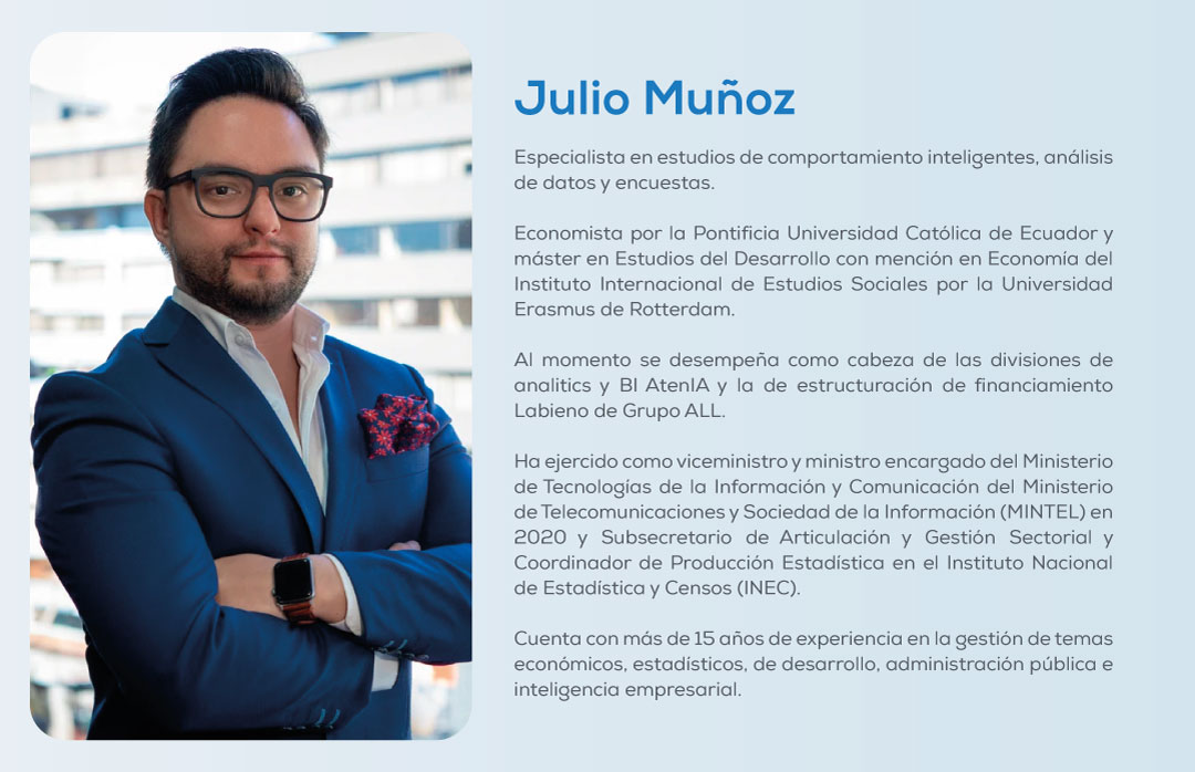 Una consultora ecuatoriana con amplia experiencia en el levantamiento de información cuantitativa y cualitativa, a través de metodologías robustas, tecnología e inteligencia artificial para la recolección en campo, lo que nos permite alcanzar una cobertura eficiente a nivel nacional.